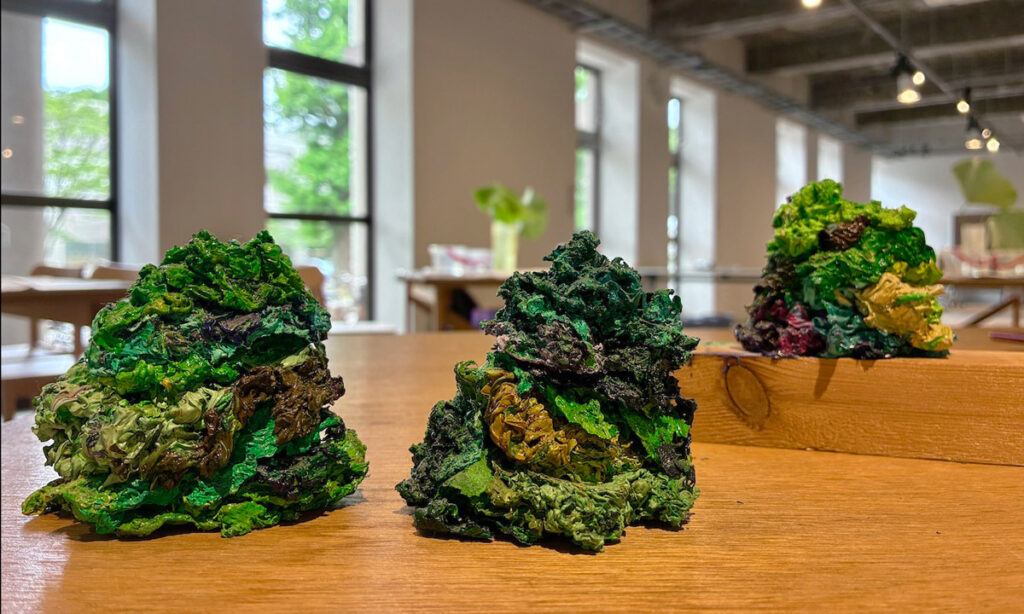 おまけ:坂本さんのテーブルにあったこの立体は、制作中にできた絵の具の塊だそう。不思議な生きもののようで、植物のようでもあり、まるでひとつの作品のような存在感です。